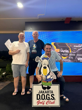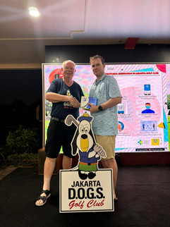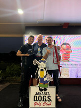 So, we came to the race for the Big Dog and Blue Jacket. With Richard needing birdies only to improve and the chasing pack having a few bogies to try and convert. Could he hold on to his lead? There was a late charge from Roger Finnie who jumped up a place but in the end the rivals only jockeyed around their own positions and didn't seem to put Richard under any real pressure. Jude and Roger did take the Mini Dogs for 3rd and Runner up places but Richard Mau won his second Blue Jacket - his first one was way back in 2007 at Jababeka!