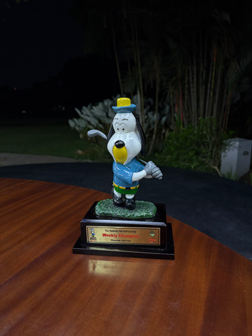 We also managed to address some pending matters this week. Mark Warren received his Most Exercise award from Round 2 during the German Open Cup on Friday. The second person from Bill Lloyd's surfing golfers crew who went from first to last in consecutive D.O.G.S. rounds.